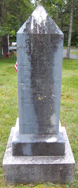 • 2. Gilbert A. Avery; (December 16, 1843 – May 25, 1864); Gilbert died unmarried at 20 yrs, 5 mos, 9 d. & is buried in Pocasset Cemetery.