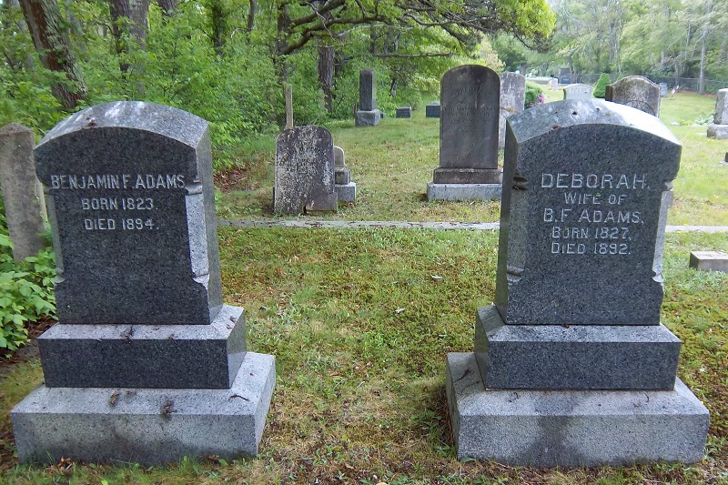 - 4. Deborah/Frankie F. Adams Avery; (May 8, 1853 – March 15, 1877); Married Zemira J. Avery (1849 – 1896) (Gilbert Ellis Avery & Reliance Taylor) in Sandwich Ma. on November 12, 1871; Zemira married (2) Sarah Frances Pulsifer (1852 – ?) (Joseph Pulsifer & Elanora F. (–)) in Pocasset Ma. on December 1, 1878; Deborah/Frankie & Zemira are buried in Pocasset Cemetery.