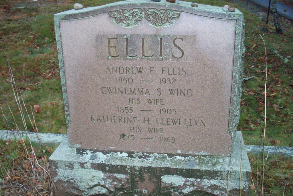 - 1. Annie Foster Ellis Bridgham; (November 14, 1877 – June 24, 1971); Married Ernest Guy Bridgham (1875 – 1964) (Joshua L. Bridgham & Angie G. Smith) in Bourne Ma. on June 4, 1901; Annie & Ernest are buried in Pocasset Cemetery.